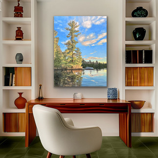 With Evermore, I focused on the way golden hour settles in quietly. The light touches the pine just enough to warm it, while everything else softens into calm. I kept the water still so it could reflect the trees and sky without interruption… blurring that line between what you’re seeing and what you’re feeling.